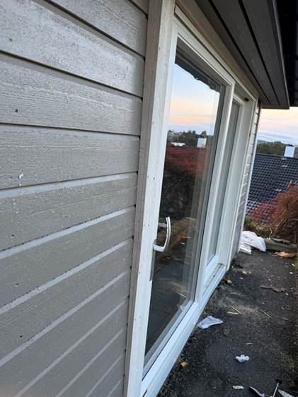 Bygget ny levegg for å lukke deler av parkeringsplassen. Vi har også montert ny skyvedør i eksisterende utehus i hagen.